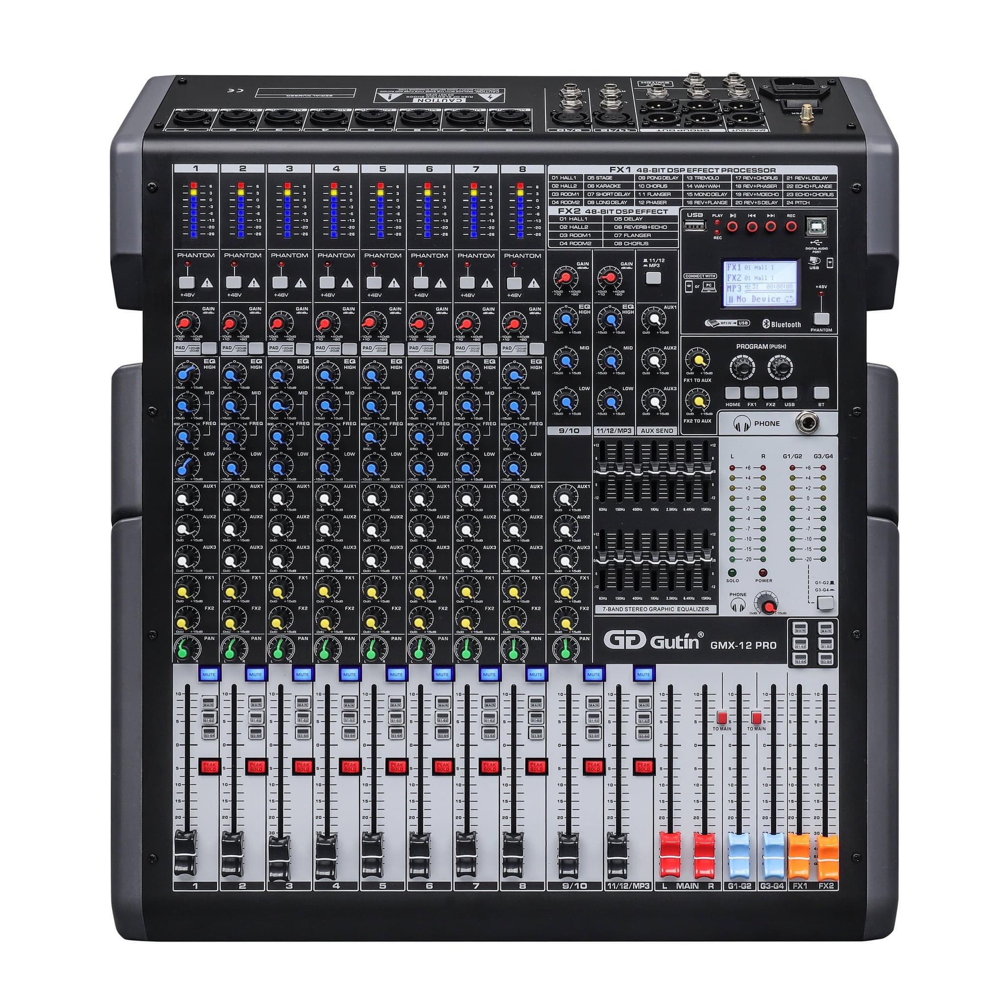 MIXER DSP48BIT GUTIN GMX12 PRO VỚI 2 EFF, 8 MONO (MIC), 4 STEREO